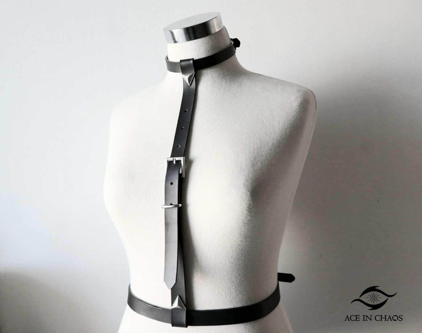 Dioxippe χειροποίητο δερμάτινο harness vest. Εντυπωσιακό, διαφορετικό, ξεχωριστό, αλλάζει απευθειας το στυλ σου, αναδεικνύει ενα απλό πουκάμισο, κανει ενα φορεμα πιο σέξυ, σου δίνει αυτό το κάτι παραπάνω που μόνο ένα τέτοιο αξεσουάρ μπορει να το κάνει. Το πιο ωραίο είναι που με το συγκεκριμένο δεν εχεις μόνο το harness vest αλλα μπορεις  να το αλλαξεις και να το φορεσεις με πολλους διαφορετικούς τρόπους. Έτσι το φοράς ως σκέτο τσόκερ, ως σκέτη ζώνη, ως γραβάτα και ως πιο μακρυά γραβάτα, μιας και τα κομμάτια που το απαρτίζουν βγαινουν και ξαναμπαίνουν για να σου δίνουν αυτές τις πολλες επιλογες μεταμόρφωσης.