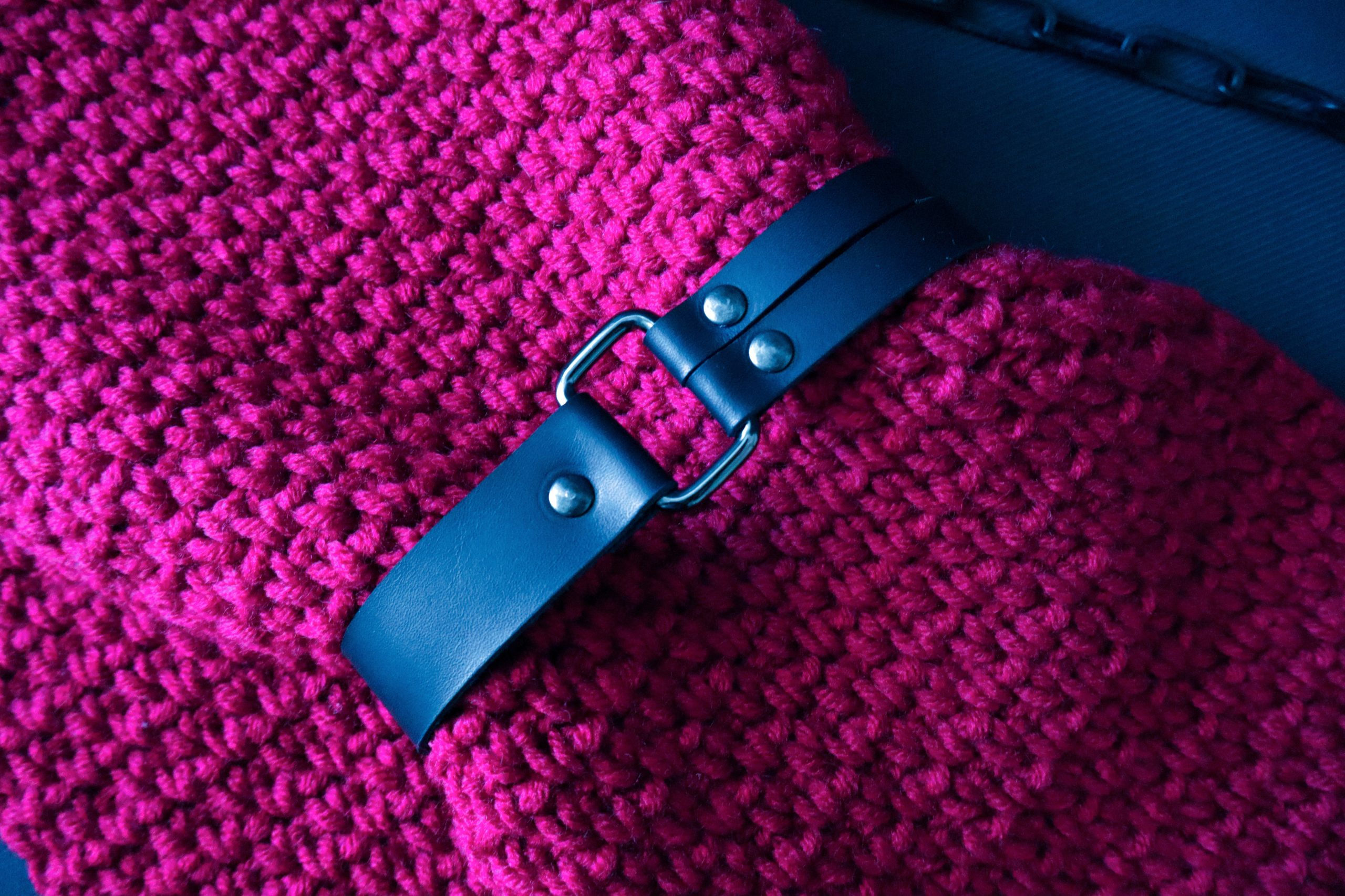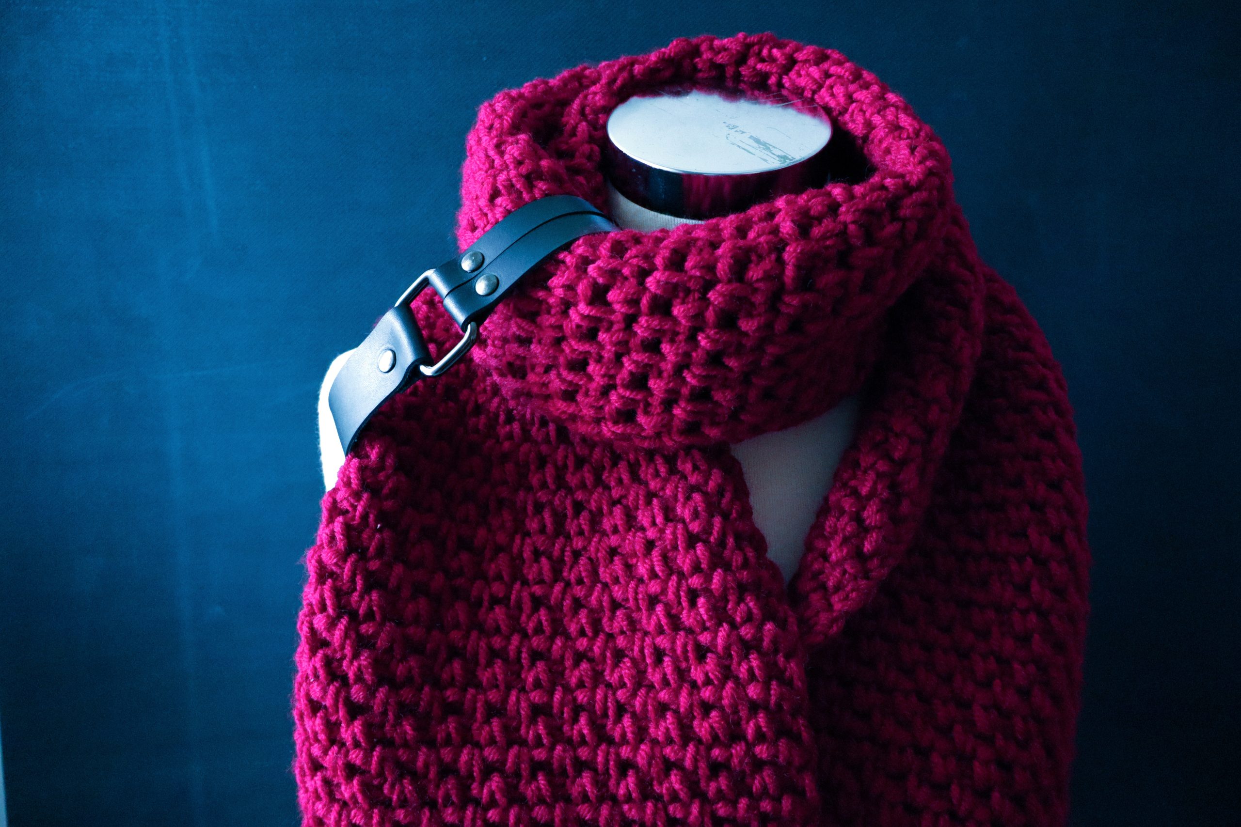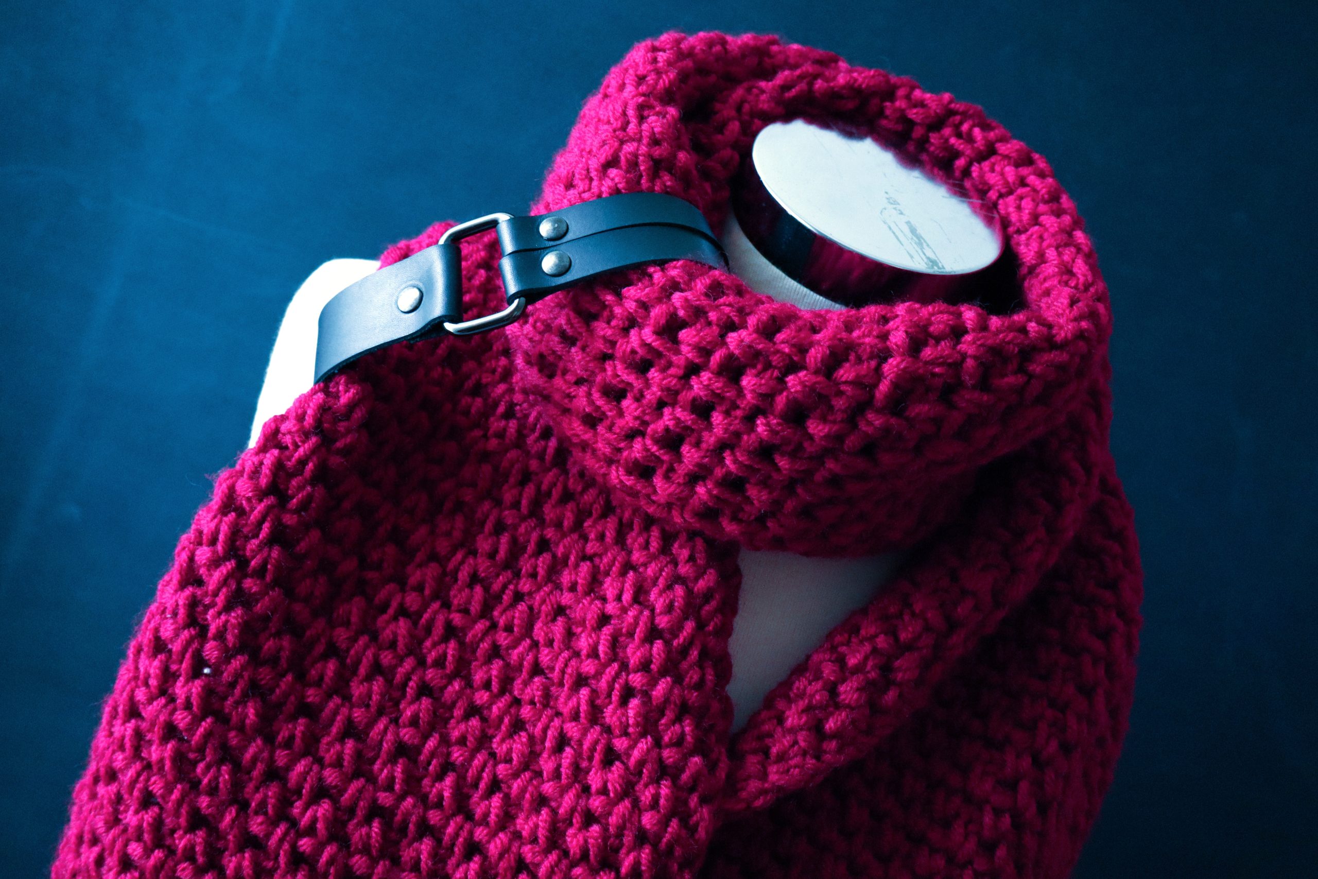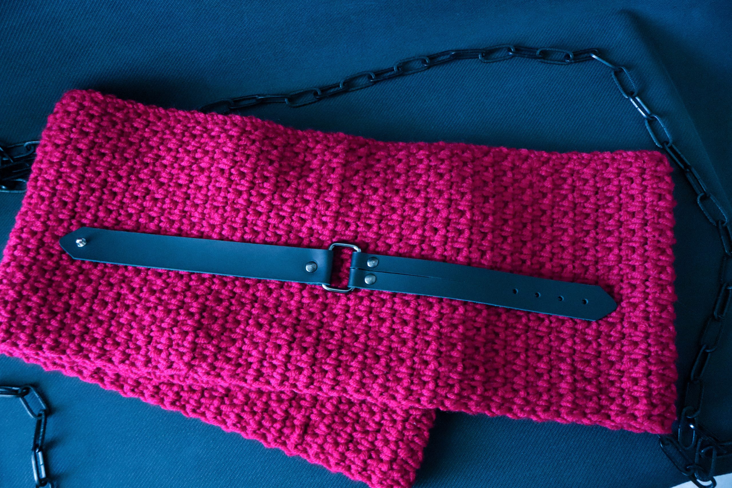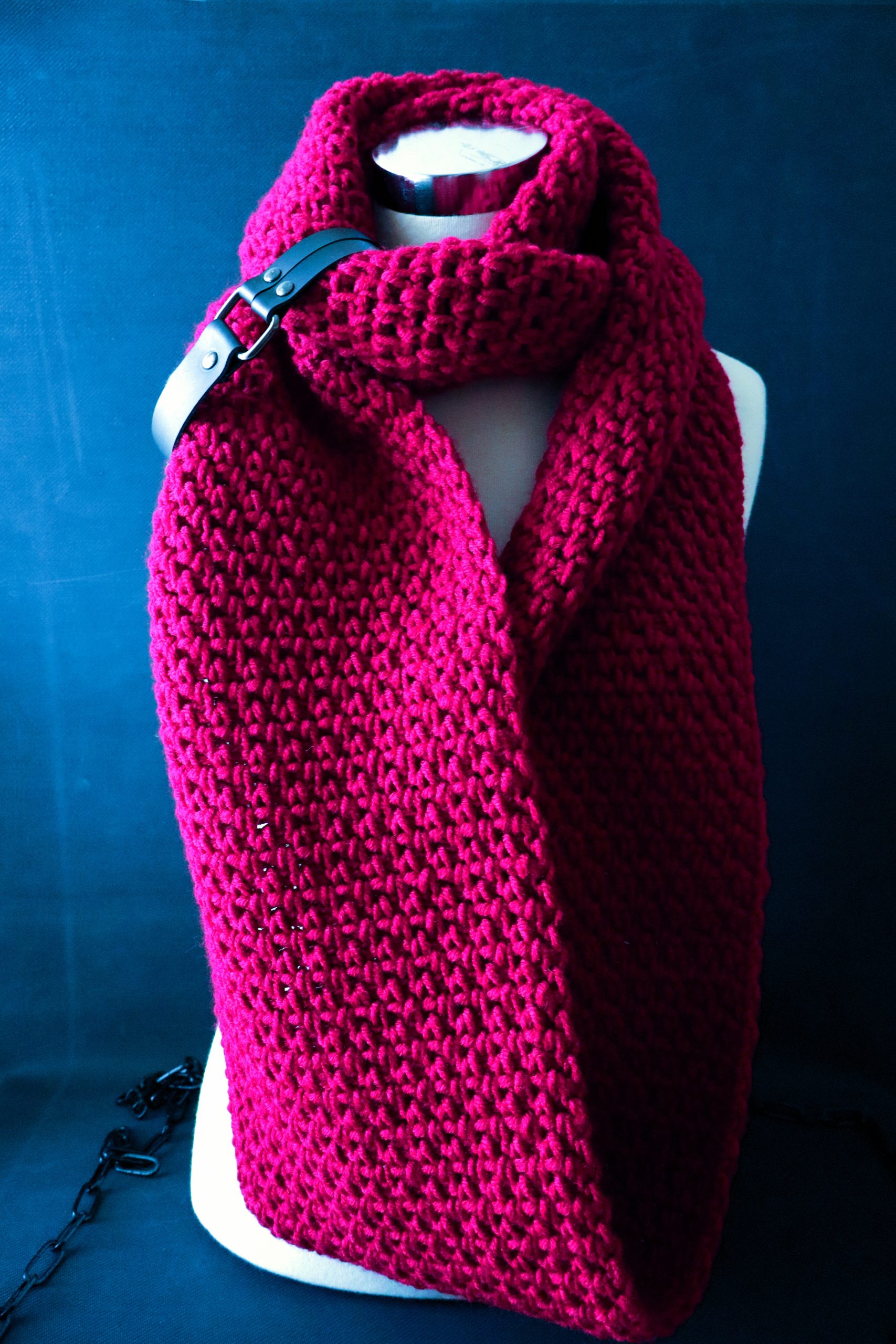 Χειροποίητος πλεκτός διπλός λαιμός-κασκόλ ή όπως είναι κοινώς γνωστό “Infinity Scarf ” . Δυο μέτρα κασκόλ , Πλεγμένο στο χέρι με βελονάκι, που ενωνεται για να μεταμορφωθεί στο πολυ ιδιαίτερο infinity scarf, συνδυασμένο με δερμάτινο λουρί-αξεσουάρ με διακοσμητικό μεταλλικό στοιχείο που οχι μόνο δίνει έξτρα στυλ αλλά το κρατάει και σταθερό.